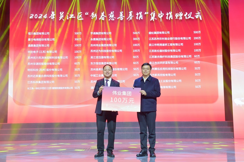 喜訊:蘇州偉業集團榮獲“2023年度最具愛心捐贈企業”